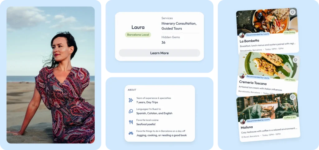 Ensuring authenticity in hidden gem recommendations was our priority, considering the prevalence of sponsored content dominating travel recommendations. To achieve this, we allowed guides to share personal details, inspired by successful models like Airbnb, enhancing the authenticity and trustworthiness of their profiles.