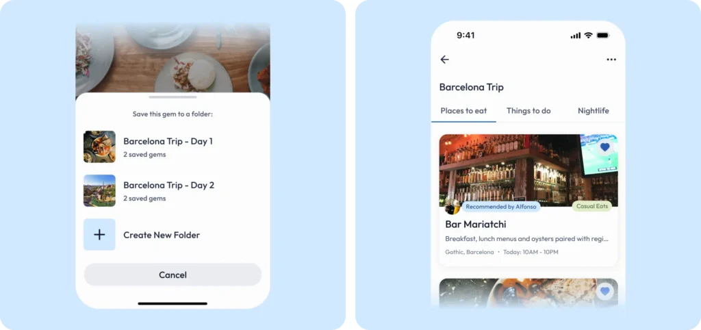 We transitioned to a simpler planning tool that allows users to outline their travel as loosely or as detailed as they prefer, without overwhelming them with unnecessary features. Our solution of letting users create Pinterest-like sets of folders to group their favorite hidden gems gives travelers the flexibility to organize them however they see fit, aligning with their varying planning styles while maintaining ease of use.