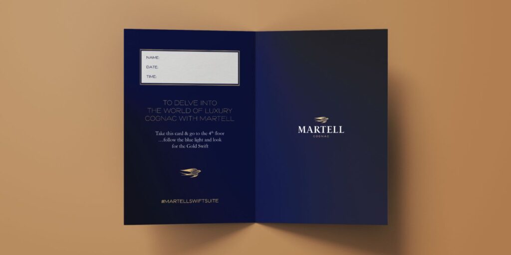 We created an immersive brand world within The Mondrian, guiding guests to the Martell ‘Swift Suite’ with bespoke invitations and key cards, flight tasting cards, digital takeovers with Time Out London and more.