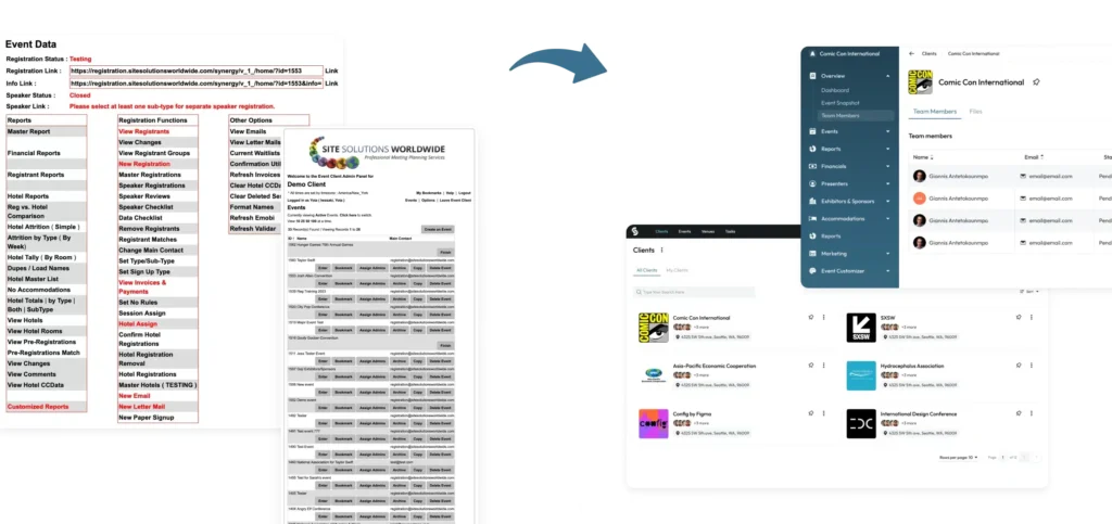 Site Solutions Worldwide (SSW) is a team of professionals specializing in the management of meeting services for virtual, hybrid, and live events. Their expertise spans a variety of key areas essential for successful events, including attendee registration, hotel accommodations, agenda & schedule, financial management, and more. Our agency embarked on a transformative journey with the SSW team to redesign their event management platform from the ground up—streamlining workflows, overhauling the UI, and introducing quality of life improvements to further increase productivity.