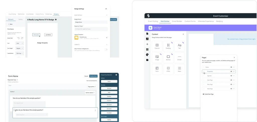 In addition to creating an effective admin management side of the platform, we needed to seamlessly integrate attendee-facing modules. Each aspect of the attendee experience—registrant dashboards, the mobile companion app, the event website, and the self-check-in process—required customization to reflect each specific event’s branding. This included applying unique fonts, colors, and logos to ensure a cohesive and branded experience for each event.