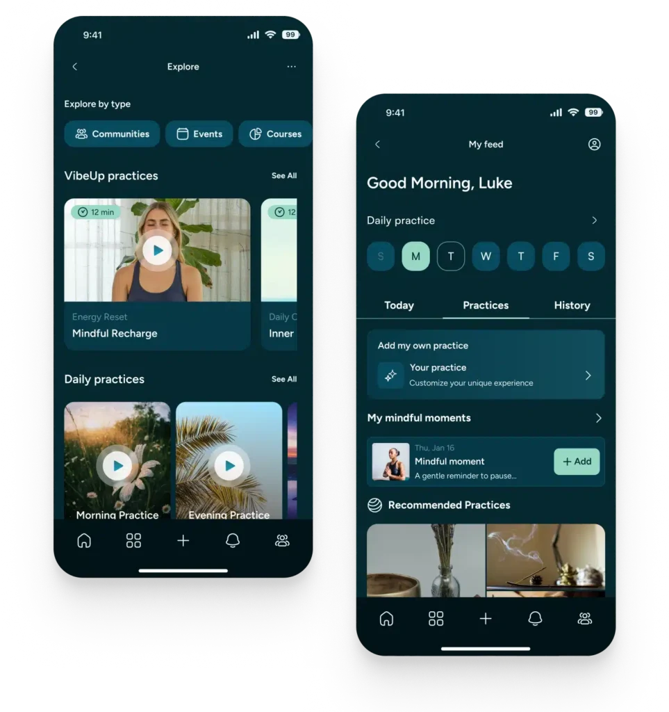 By blending curated content with meaningful social interaction, VibeUp offers a positive, judgment-free environment where users can discover practices, join communities, attend events, and form authentic connections—all within one seamless experience.