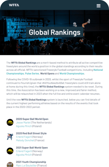 The WFFA project, sponsored by Red Bull, was launched as a digital event during COVID, designed to keep freestyle football alive and engaging for global audiences. The initiative focused on building a dedicated website where participants could upload their freestyle football clips and compete virtually, as going out was not an option back then. Each video submission was scored by professional judges, with the competition structured across three exciting rounds, bringing together talent, creativity, and community in an innovative online format. JPLoft experts developed the website and made this possible with seamless tech execution and creative solutions.
