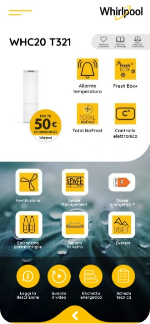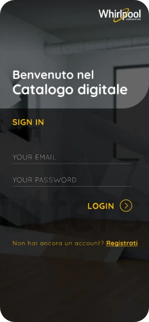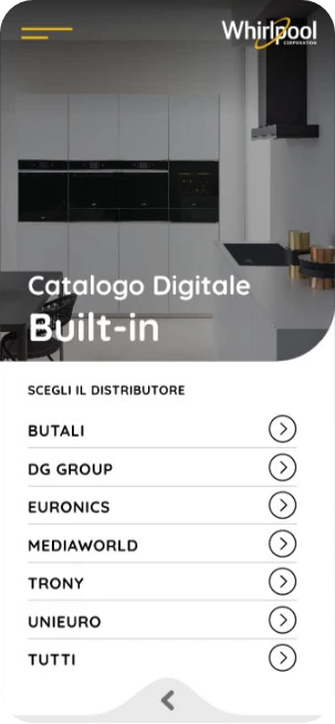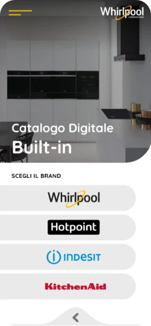 A digital catalog app showcasing unified products from Whirlpool, Indesit, Hotpoint, and KitchenAid. The platform enables stakeholders to explore, compare, and create custom PDF catalogs with ease.